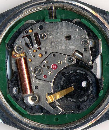 僅か(3石)ですが石も使われており、良き時代のクヲーツ・ムーブメントです。