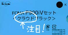 クラウドとおそろにするためならどこへだって足を運ぶさ!‥‥‥県内ならね(笑)。というわけで家電の前に座り込み、渡された電話番号一覧にマーカーを用意しながら 電話をかける。絶対見つけてやるぞ、という勢いで掛けまくりました。 しかし、さすがに店員がさじを投げただけあってどこへ掛けてもない。 あったとしても色が違う。黒以外は結構在庫があったんだよね。 うーむ、やはりクラウド好きが買っていったのか? そろそろ電話掛けるのも嫌になってきた頃(20件以上は掛けたと思う)ようやく取り扱い店 発見!これだけ掛け続けていると、もうこっちも「ありません」という返事を頭のどこかで 予想しているから「在庫ありますよ」といわれた時には一瞬うろたえてしまいました。 で、思ったよりも近場のショップにありました。よかった〜。 もしこれからP900iVを買いたいという人のために一言。田舎の方だとまだ残っているみたいです。 手に入れるためだったら2,3万くらい出してもいいぐらいの気分だったのに 1円で売ってくれました。‥‥ドコモさんもさ、なんつーか、この時期に大々的に売り出せば もっと儲かるだろうに‥‥。きっと私のような人間他にもいると思うよ? なかなかプレイ日記に入らないね(笑)。まあいーか ショップでの出来事。これがなかなか試練でした。「予約をした秋山です」と言うと、 店員さんがさっそくP900iVを出してくれました。わーい、クラウドとおそろいだーと 大喜び。ここまでの道のりも長かったからよけいに嬉しかったのです。 喜びつつ、ふとパッケージを見ると、色の名前が「クラウドブラック」‥‥‥ ![]() こ、この「クラウド」ってのはやはりあの「クラウド」のことなんだろうか ‥‥たぶんそうだろうな。 しかしこんなに堂々と書いてあるなんて、私がAC目当てだというのがバレバレ じゃないか!○○才にもなって、ちと恥ずかしい‥‥。 と、一人恥じ入っていた時に店員さんが 大きな声で