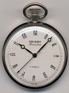 干支の文字は、読めない言葉(漢字?)が、書かれていますが、間違えなくORIENT製です。