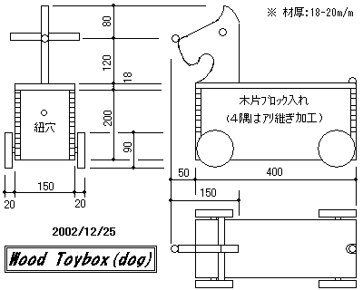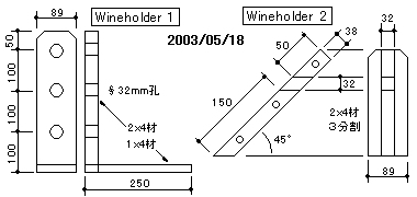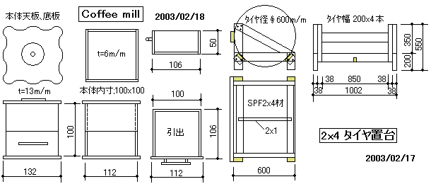 ※ SPF 2×4材の端材でワインホルダー2種類を造ってみました。(私は飲めません >>> 飾るだけ!!!) ※ 早速 @10m/m pich アラレ組冶具で Coffee Millを造ってみました。右側は冬用の"スタッドレスタイヤ"保管台です。 ※ 孫へのクリスマスプレゼントのおもちゃ;胴体部の箱の中には端切れ木片で造った"カラーブロック"が入っています。