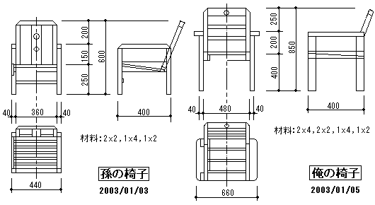※ 正月休みの間に孫と爺ちゃんの椅子を製作しました。