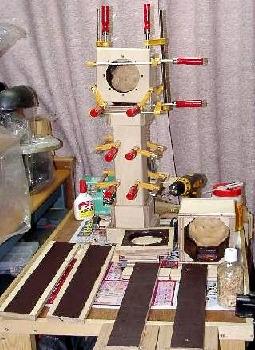 ※ ヘッド&ネック部組立中(内側塗装済み) 焼却炉(スピーカー)全体の仮組状況