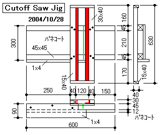 ※ 相欠き等の溝とホゾ切り用に小型の冶具を製作しました。