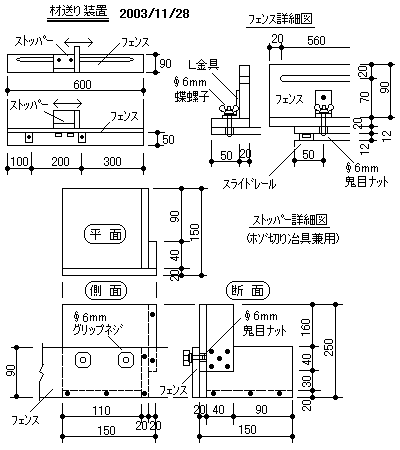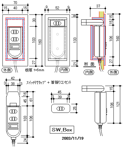 ※ 材送り装置ストッパーはホゾ切り冶具兼用型にしてみました。 ※ 内外から使用可能なスイッチ付コンセントボックス![]()