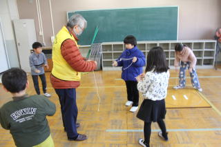 | 1月19日月曜日 地域の力 今日は、地域の方々の力を感じる一日でした。2年生のむかし遊びでは、地域のボランティアの方々が、コマ回し、けん玉、あやとり、お手玉、紙飛行機などの遊びを教えていただきました。そして、6時間目のクラブ活動では、地域の方が一緒にグランドゴルフを楽しむ姿が見られました。 |