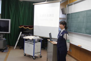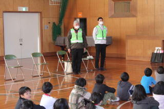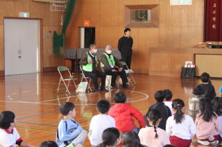 | 1月21日水曜日 防犯教室、交通安全教室 今日は、外部講師を招いて、2年生で防犯教室、3年生で交通安全教室がありました。2年生は、不審者や事件に巻き込まれないためにどうしたらいいのか、映像で具体例を見ながら考え、学習しました。3年生は、現役の警察官の方が、事故の事例などを紹介し、事故にあわないため、自分の命を守るための方法を学習しました。 |
