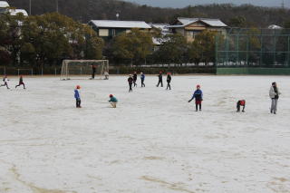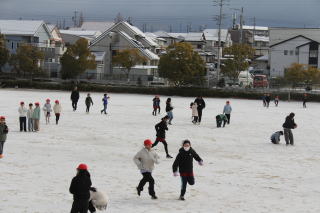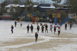 | 1月23日金曜日 雪遊び 昨日の夜から降り始めた雪が、今日の朝、グラウンドに薄っすらと積もっていました。登校直後、子どもたちが元気よく運動場に出てきて、雪遊びをする姿が見られました。子どもたちは、久々の雪の感触を楽しんでいました。残念ながら雪は2時間目にはなくなってしまいましたが、多くの子どもたちが雪と触れ合っていました。 |