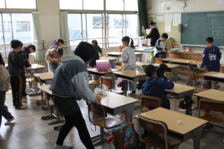 | 3月23日月曜日 大掃除 今日は、教室移動で、新しい年度を迎えるために、大掃除がありました。1年間お世話になった教室をきれいにする日です。そして、次に使う下級生が気持ちよく教室を使うことができるようにしました。 また、大掃除で使用する、清掃用の手作り清掃道具をいただきました。その清掃道具を使って、流しなどの水場をきれいにすることができました。 |