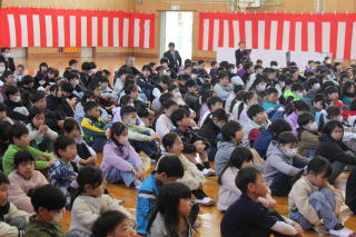 | 3月3日火曜日 卒業を祝う会 今年も、5年生を中心として、「卒業を祝う会」が実施されました。今年1年、最高学年として学校を支え、盛り上げてくれた6年生に、在校生がお礼をする会です。各学年、それぞれ練習してきたプレゼントタイム。6年生だけでなく、全校が笑顔になった会でした。5年生は、在校生代表として、卒業式に向けて気持ちを高めていきます。 そして、6年生は新たな門出を全校みんなに見送られながら、卒業への向けて新たな旅立ちです。学校みんなで、6年生の新たな門出を応援します! |