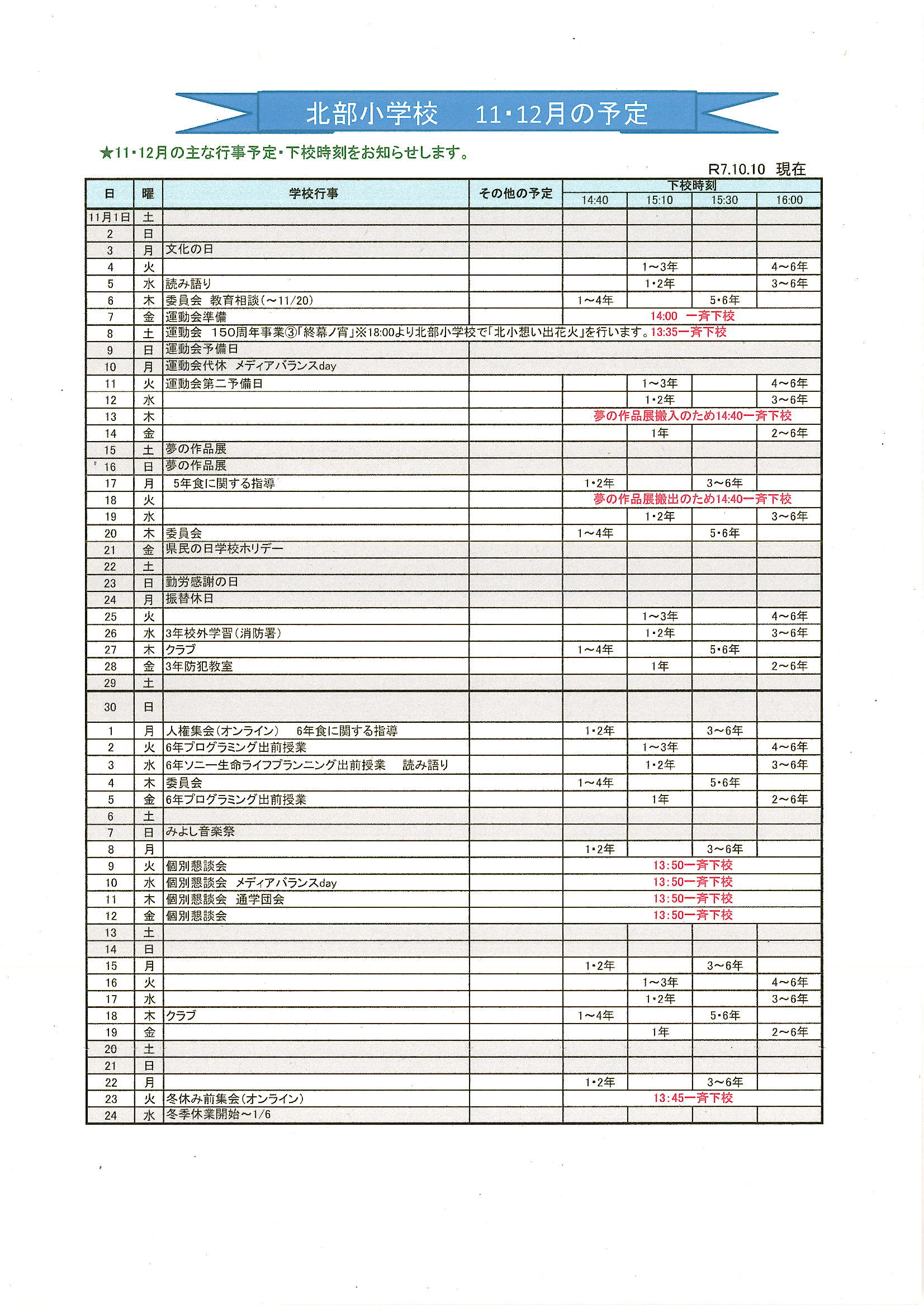 | ※各種行事につきましては、日程の変更や中止・延期する場合があります。その際は随時お知らせいたします。 |