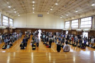 | 避難訓練 新教室からの避難経路を覚え、落ち着いて行動できるように訓練を行いました。安全に避難できたと振り返る児童が多くいました。 |