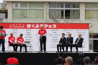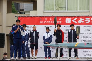 | 北部小学校創立150周年記念事業 ほくようフェス 150周年記念式典 オープニング 北中太鼓・三好太鼓のかっこいい演奏で、ほくようフェス、スタートです! 莇生消防団の演舞も必見でした。 実行委員長・来賓祝辞 北部小を支えてくださる皆様から、過去・現在・未来へとつながる北部小へのエールをいただきました。 児童の発表 5年生が「北小あるある」、6年生が「わたしたちは北部小のこんなところが好き」を発表しました。会場からは笑いと拍手が巻き起こりました。 歴代校長紹介 歴代の校長先生が舞台上に並ぶレアな光景の中、歴史を感じるインタビューが行われました。 校歌合唱 北小っ子がたくさん舞台に上がり、みんなで校歌を熱唱しました。 ステージイベント ブレイヴキングス刈谷、ダンス、みよし市吹奏楽団、みよし高校カヌースプリント部の皆様によるイベントが行われました。それぞれの魅力満載のステージでした。 スポーツ体験 ハンドボール体験やカヌー体験、スポーツタイムアタックなど、子どもたちが大喜びで体験していました。 北部小学校150周年歴史展示・150周年記念アート・未来予想図展 たくさんの方にご来場いただき、過去・現在・未来をみんなでつなぎました。ほくようストリートPIANOにより、体育館に素敵な音色が響き渡りました。 校舎内イベント ゲームコーナーやぼっちゃ体験・むかしあそび・ワークショップ・三好太鼓体験など、校舎内も賑やかな声であふれました。 キッチンカー 終日、列が絶えませんでした。子どもたちは、お目当てのキッチンカーに並び、みんなで楽しそうに食べていました。 ボランティアスタッフの皆様 たくさんの皆様のおかげで、様々な世代の方々が笑顔でつながる、大盛況のほくようフェスとなりました。ありがとうございました! |