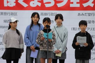 | 前期終業式 2・4・6年の代表児童によるスピーチがありました。学級や下級生のために活動した中での自己の成長に目を向けた素晴らしいスピーチでした。 夢の作品展・作文詩コンクール・読書感想文コンクールの表彰もありました。表彰を受けた児童の皆さん、おめでとうございます。 |