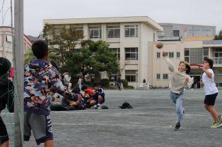 | 体力テスト 1年生は、初めての体力テストに挑戦です。練習を生かして、力いっぱいボールを投げました。日陰で水分補給をしながら、応援する姿も見られました。 |