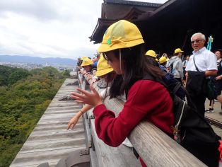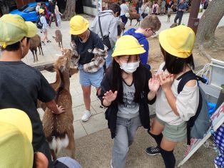 | 修学旅行 修学旅行から帰ってきた6年生は、帰校するとどの子も声を弾ませながら2日間のことを教えてくれました。 「清水寺の舞台が高かった。高所恐怖症じゃないから全然怖くなかったけど!」 「何だかんだ、お土産の時間がすごい楽しかった」→「分かるーーー!!(多数)」 「金閣寺は、写真で見るより、自分の目で見た方がずっときれいだった」 「龍安寺は、心が落ち着いたー」 「旅館の夜、みんなで恋バナをした♡(女子)」→「俺たちもー!(男子)」 「東大寺の大仏の鼻が思ったより狭かった。でも、通れた!」 「鹿のフン、ふんじゃった」→「えっ・・・(母)」 今、ご家庭でも、美味しいお夕飯を食べながら、たくさんのお土産話で盛り上がっていることと思います。6年生の先生たちも、職員室で2日間の話をずっとしていました。みんなにとって充実した楽しい2日間であったことが伝わってきました。 |