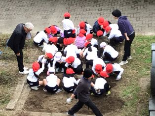 | 畑づくり ぽかぽか陽気の中、畑づくりを行いました。上手に土を耕す子どもたちの姿に、先生たちも驚いていました。季節によって変化していく畑の様子が今から楽しみです。 |
