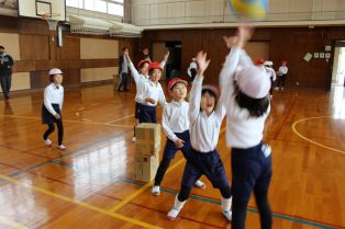 | 保幼小連絡会 手をピンピンに挙げて授業に参加する1年生の姿に、幼稚園・保育園の先生たちは大喜びでした。立派に1年生として過ごす姿を見てもらうことができました。 |