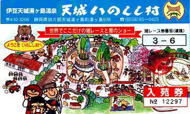 入園件 いのししレースのレース券が記載されています。 当たると記念にキーホルダーまたはいのししのぬいぐるみなどもらえます。 |
