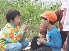 青空の下で食べるのはおいし〜い ![]() |