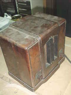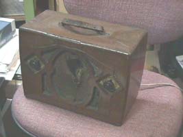 17〜8年前に危険物置き場にあった物をひらってきました。 一応まだ完動します。 保管か悪くスピーカー前面が敗れてしまいました。 メーカは不明です。 内部詳細写真のページ ・ラジオの部品紹介 ・近くの骨董品点の商品紹介 | ||||