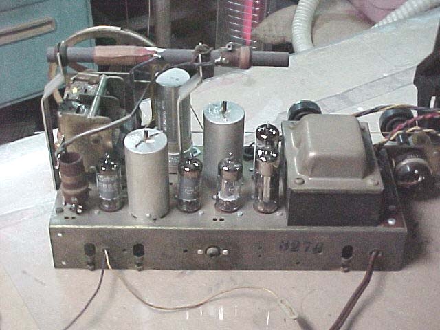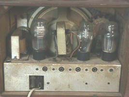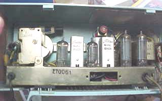 99/01月入手 サンヨー電機製 型式 SF−660 回路図貼り付けてありました。 マジックアイ付きです。 これがそうです。電波が強いと緑になります。 左が未同調 右は同調している状態です。 ほとんどの部品が内製していたようです。 | ||||