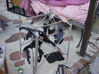 朝起きてフレームを庭に出してみました。コテコテ塗ったため、かなりむらがあります。