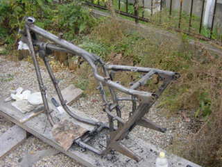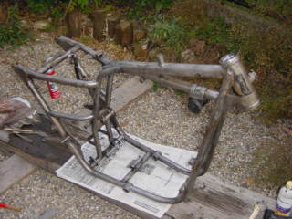 フレームの塗装はサンドブラストし、粉体塗装がベストなことは十分承知していますが、資金が無いこと、できる範囲でまず自分でやってみたかったので、剥離剤での剥がしとPOR−15による塗装をすることにしました。上塗りのウレタン塗装が必要か、塗装後に出来映えで決めようと思う。