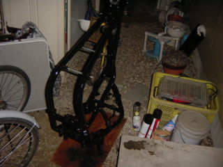 昨日の夕方塗ったフレームが気になって30分おきに見に行きましたが、8時すぎに辛抱堪らず、2度塗り目に入る。照明が悪く、薄暗いなかでの作業となる。