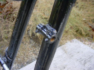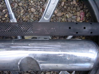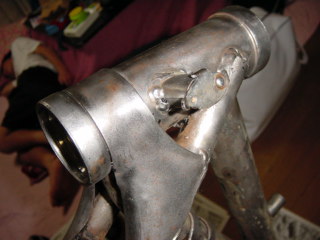 これがヘッドガゼット部です。反対のフレームbェ刻印してある部分もきれいに剥離してしまいました。