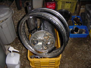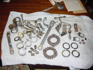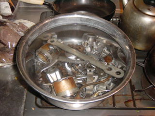 これでメッキに出す部品はほぼ準備できました。中央の鍋に入っている小物は予算に応じて依頼することにします。