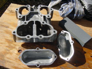 シリンダー、コンタクトブレーカーガバナーとの接合面以外に、プライマリーチェーンケースとの接合面もついでに研磨しておきました。