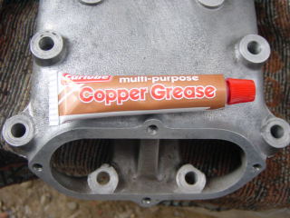 取り外したスタッドボルトを元通りに組み付けますが、ネジ部にはカッパーグリスを少し塗っておくことにしました。このグリスは先日「とある方」から提供いただいたもので、私は初めて使ってみましたが、名前の通り銅の色をしたグリスでした。