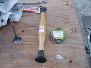 これがバルブ摺り合わせをするための通称「タコ棒」とバルブコンパウンドです。実は愛知県内の方から借用させていただいているものです。大変ありがとうございます。