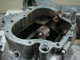 このあと、タペットを組み付け、クランクケース、シリンダヘッドとの接触面をオイルストーンで研磨して、組み付け準備完了です。