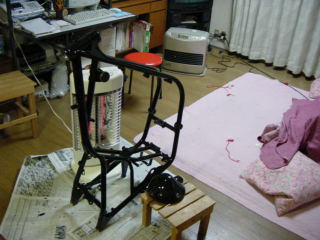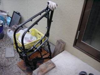 実は先週カミサンからこの日程を聞かされてから、この3日間をどうするか考えていました。フレームの塗装について結論を出さないと、次のステップに進めないため、やはりやり直すことにしました。拙HPメンテナンス日記を見ると「このままにする」、「やはりやり直したい」と気持ちが交錯していましたが、神が与えてくれた3日間で再チャレンジすることにしました。