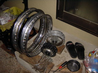 その後スポークを取り外して行きますが、なにせ合計80本あるため約1時間半かかってしまいました。ハブとリムは化粧を直して、また活躍してもらい、スポークとニップルはお役御免になります。