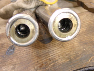 年の瀬の日曜日とあって、大掃除やら買い物やらに忙しく、昼食後の少し空いた時間に昨日分解したリアサスのショックアブソーバー部を真鍮ブラシで磨いていました。センターのシャフトを上下させてストロークを確認しようと、下に押し下げていきました。フロントサスと同様、ボトムがあるとばかり思っていましたが、なんとシャフトが中に落ち込んでしまいました。