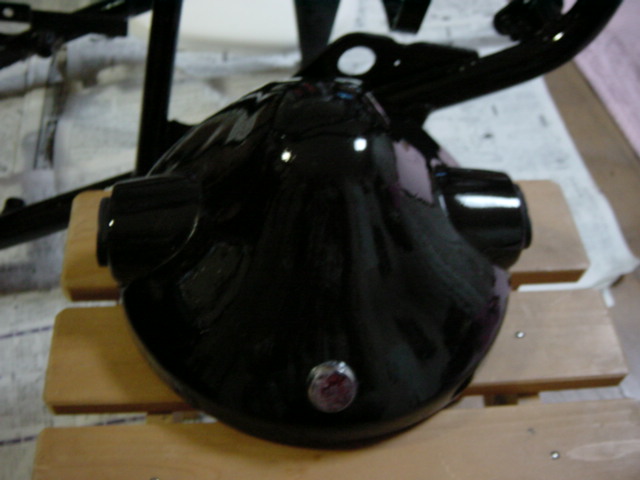 実は昨夜夢を見まして、夢のなかで塗装のやり直しをしました。また剥離剤で塗装を落とし、電ドルの真鍮ワイヤブラシで表面が光るくらいまで磨き上げたところ、POR−15(うすめ液ですこし希釈)が薄くのり、2度塗りできれいな仕上がりになりました。再度、塗装をしなおすべきか思案橋(少し古い?)です。