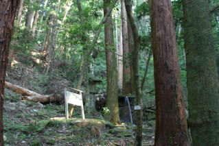 これが由緒のある”御滝”だ。![]() ここしばらく、水が流れては居なかった。 今年、2004年、水源からここまでの間の脇に漏れる水を止めて流れるようにした。 村民の念願の”御滝”である。 何枚もお示ししたが、・・・、村民にとっては意味深い。 ここで先ず一休み。 |