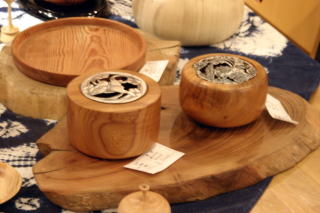 ドングリには、ヘタの部分を外すと中に小物を納めることができる。材は、ソヨゴとエノキ。