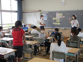 | 9月5日(火)5年生の教室では、給食センターの方が見え、食に関する指導をしてくださいました。 |
