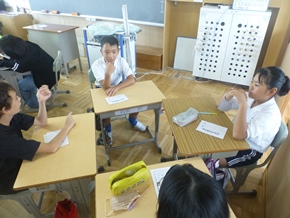 | 9月12日(火)今日は1年1組で生活科の研究授業がありました。多くの先生が来ましたが、子供たちは伸び伸びと授業をしていました。 |