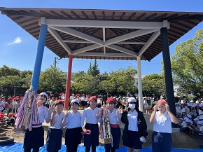 | 10月15日(金) 今日は後期の始業式でした。その後5年生は稲刈りをがんばりました。 |