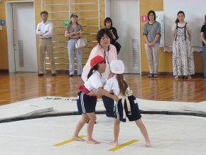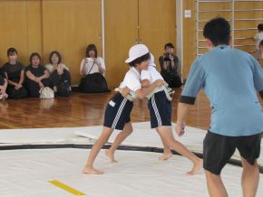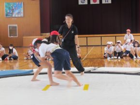 (右)2年生のすもうです。予選会を行っています。熱戦が繰り広げられていました。周りの友達からは「がんばれ~!」と大きな声援があり、温かい学年・学級だと改めて感じました。保護者の方にも参観いただきました。まことにありがとうございました。 |