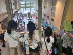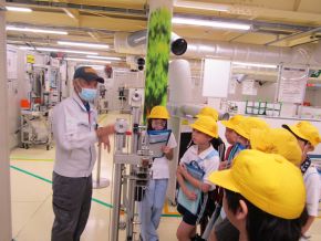 (右)2年生は校外学習として給食センターへ行きました。たくさんの人が携わって給食ができていることを知り、給食のありがたさが分かりました。 |