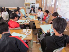 (右)5年1組で国語科の研究授業を行いました。「和の文化を受けつぐ -和菓子をさぐる」において、自分の考えをもとに、友達とたくさん意見を交わし合いました。 |