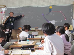 (右)大学の先生を講師にお迎えし、6年2組で国語科の研究授業を行いました。本時の課題に対して、みんなで考え合いました。するどい気付きが多くて、さすが6年生と感じました。 |