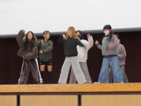 (左)正課クラブの「日本の祭りクラブ」が、なかよしタイムに活動発表会として踊りを披露しました。たくさんの三吉っ子が見にきました。とてもかっこよかったですよ。
