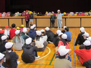 (左)5年生は今日「おにぎりパーティー」でした。田植えや稲刈りでお世話になった方をお迎えし、感謝の会を行い、その後、収穫をしたお米を炊いて、つくったおにぎりをみんなで食べました。とてもおいしかったです。