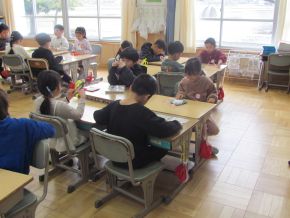 (左)1年生の様子です。2月2日(月)に新1年生入学説明会を予定しています。年長さんと現在の1年生との交流会の準備をしていました。